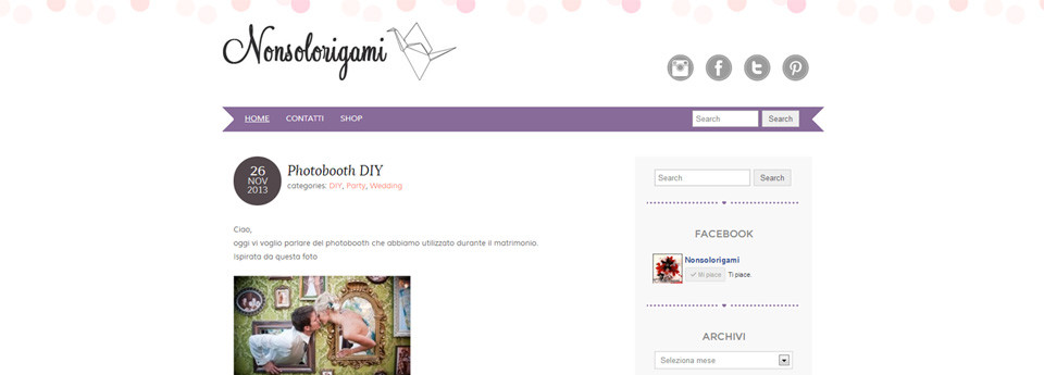 DESCRIZIONE: Realizzazione del sito Nonsolorigami: decorazioni per feste, matrimoni, scatole regalo, origami e tanti altri oggetti fatti a mano.